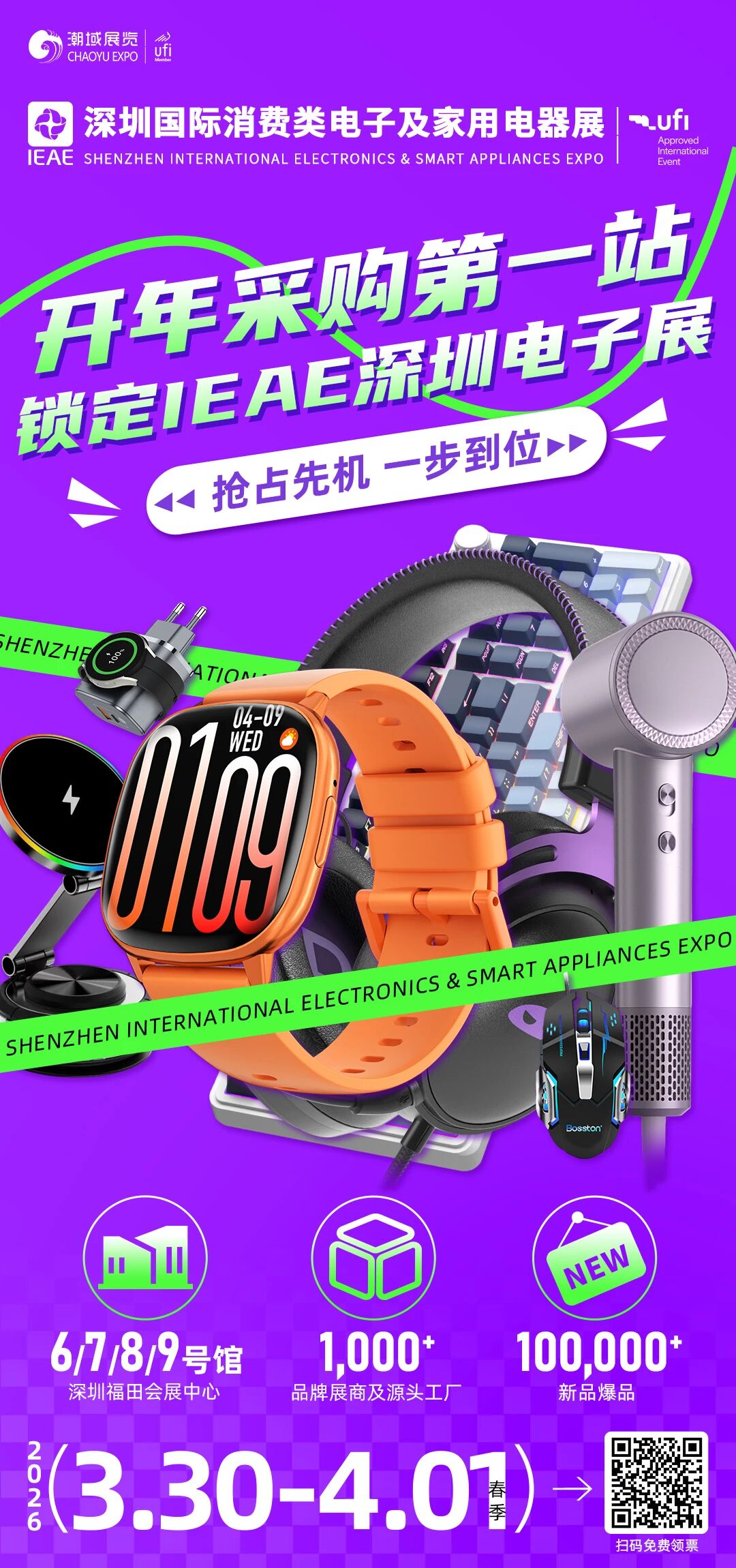 作为极具规模和影响力的消费类电子及家用电器展,第七届IEAE深圳电子展蓄势待发,将于2026年3月30日-4月1日,在深圳福田会展中心盛大开幕!